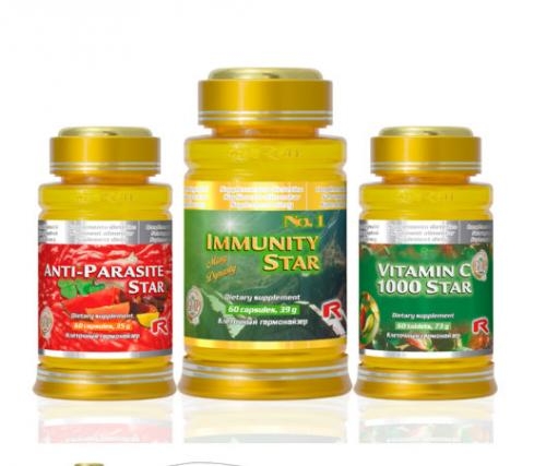 Immunity star -echinacea, yzop, rozmarýn a tymián pro normální funkci imunitního, dýchacího systému. Vitamín C se šípkem přispívá k tvorbě kolagenu v dásních, kůži, cévách a chrupavkách. Anti Parasite s ořešákem, hřebíčkem, česnekem a fenyklem pro podporu vylučování a detoxikaci.
