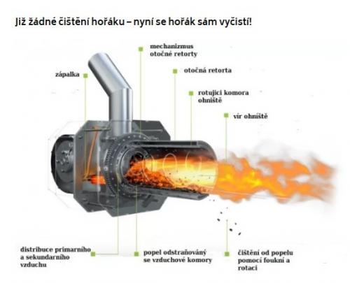 samočisticí hořák s rotační spalovací komorou