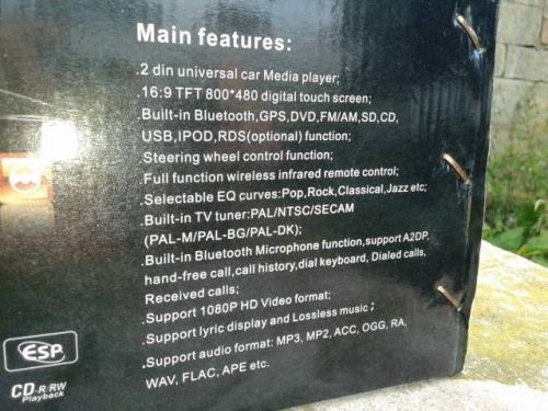 GPS 2DIN autoradio s DVD, bluetooth a GPS Vše viz reálné foto. Přesně toto odešlu na dobírku. GPS anténa v ceně. TFT LCD dotyková obrazovka - 16:9 displej s vysokým rozlišením a jemným obrazem podporuje 1080P HD videa Bluetooth ( A2DP )pro bezpečné telefonování přes hands-free podpora připojení couvací kamery- automatická aktivace při zařazení zpátečky mikrofon na přední straně rádia možnost připojení DVR kamery. nastavení fader, balance, ekvalizér dálkové ovládání podpora připojení Ipod a iPhone USB vstup, slot na SD karty až 32 GB. Záruka na funkčnost při zapojení. Přivezeno 16kusů z Německa z výprodejů. Poštovné s balným na dobírku 200kč + cena autorádia.