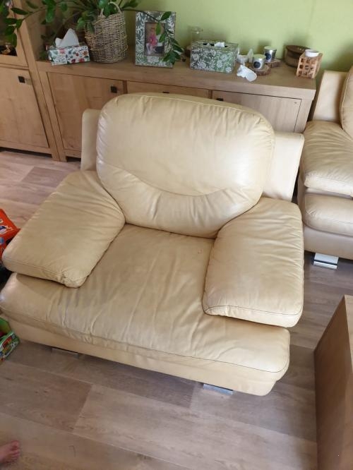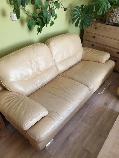 Prodám koženou sedací soupravu v krémové barvě, používaná, ale stále v pěkném stavu.