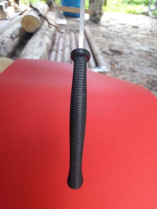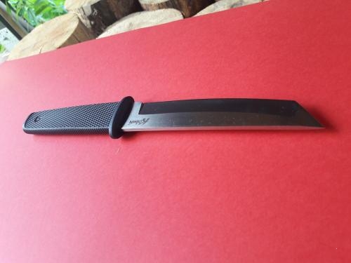 Svou plochostí je Kobun skladný, ale hlavně lehký nůž (125g), jenž zároveň neztrácí stabilitu v úchopu. Vzhledem k velikosti a skladbě rukojeti je úchop možný jak přední (seknutí), tak zadní (bodnutí). Krom sebeobrany je nůž kvalitní pomocník při práci se dřevem, plastem apod. Spona na pochvě je kovová, což je lepší verze oproti plastové, a je odnímatelná. Běžná cena originálu je 1390,- plus mínus, přičemž Kobun, který nabízím, je pouze rozbalený, nepoužitý, coby přijatý dar něčeho, co již mám. Čepel 13,2cm. Celková délka nože je 24,5cm.