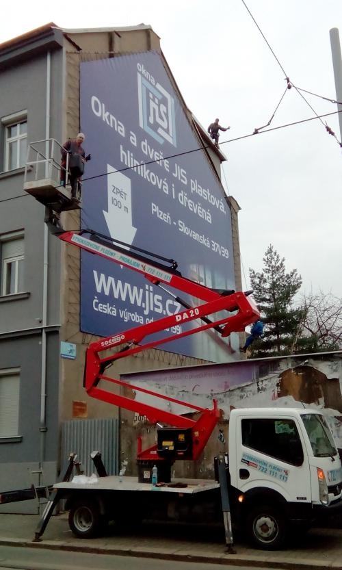 Provádíme výškové práce z plošiny, rizikové výškové práce horolezeckou technikou na lanech, dále pronájem výškové plošiny dosah výška 24m, stranový dosah až 14m. Obsluha vysokozdvižné plošiny na místě plošiny obsluhuje a dohlíží na bezpečnost provozu. Pohotovost plošina. Mytí oken ve výškách, prořez a další montážní práce.
