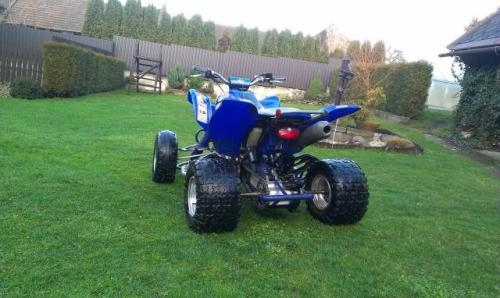 Upravená jako závodní speciál- široká přední ramena RX2,rozšířená na 128 cm, v zadu s podložkami rozšířená na 120 cm.Řízení a řídítka Renthal,gripy řídítek, seřiditelné tlumiče, hliníkové nášlapy,zadní nárazník a přední nárazník.