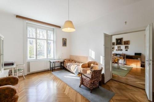 Nabízíme unikátní světlý prostorný byt na Hradčanech.Dispozice 4+1 s užitnou plochou 172 m2,s terasou 13 m2 a zahradou 273 m2(náš podíl je 1/3=91 m2).Byt se nachází ve 2.zvýšeném nadzemním podlaží v malé činžovní vile se 4 bytovými jednotkami v bezprostřední blízkosti Písecké brány, Bílkovy vily s pěším dosahem Královské zahrady,Pražského hradu,Chotkových i Letenských sadů.