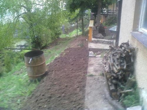 Jsou zde betonové základy s odpadem na vybudování koupelny.