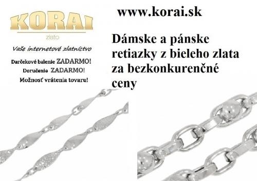 V ponuke internetového obchodu so šperkami KORAI nájdete krásne dámske a pánske retiazky zo 14 karátového bieleho zlata za bezkonkurenčné ceny. Retiazky z bieleho zlata ponúkame v rôznych dĺžok, vzoroch a šírkach. Navštívte e-shop KORAI a zaručene si vyberiete. Internetové zlatníctvo KORAI. Online šperky KORAI. E - shop KORAI Vaše internetové zlatníctvo ponúka zlato. Internetové zlatníctvo KORAI. Online šperky KORAI, zlato, zlaté šperky. Online zlatníctvo KORAI. E-shop KORAI šperky. Online šperky KORAI.