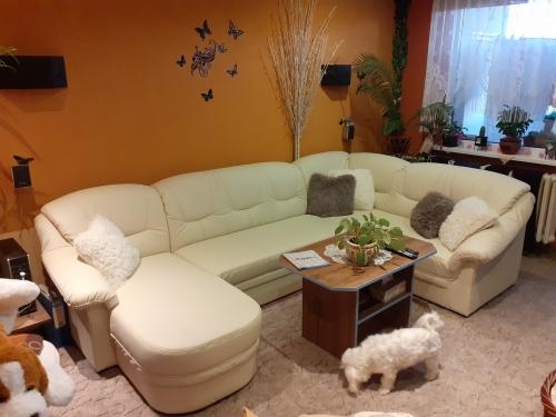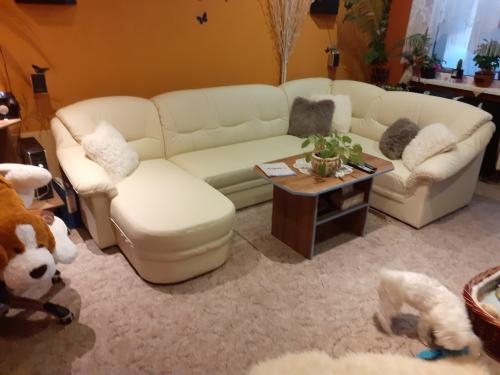 Krásnou rok starou sedací rozkládací bílou sedačku z eko kůže .Původní cena 20000..Rozměry 280x185x145