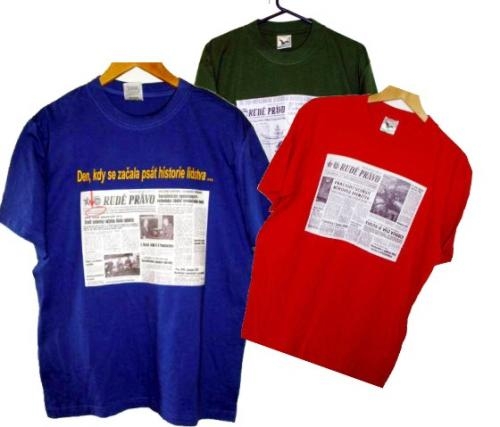 Kvalitní značkové tričko potiskneme úvodní stránkou novin ze dne,
