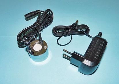 přístroj osazen blokovacím senzorem, který při nedostatku vody přístroj vypne, takže nedojde k poškození keramického disku, který svým kmitáním vodu atomizuje na mlhu. Přístroj je napájen 24V z DC adapteru, který je součástí dodávky.